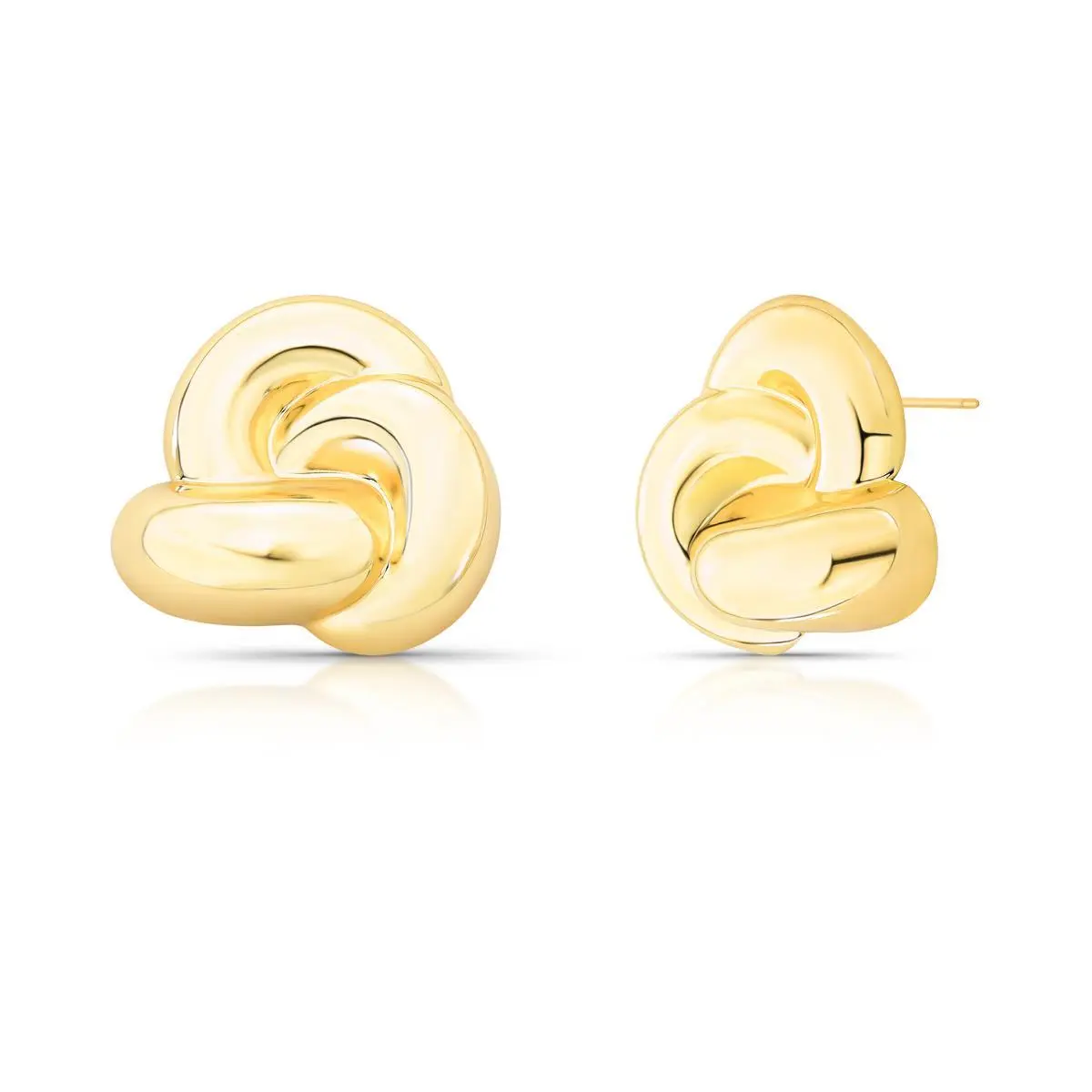 Brinco de nó trançado e texturizado, liso, curvo, banhado a ouro. Com nuances texturizadas no metal, esta peça transita com versatilidade, adaptando-se tanto a momentos descontraídos quanto aos mais formais.