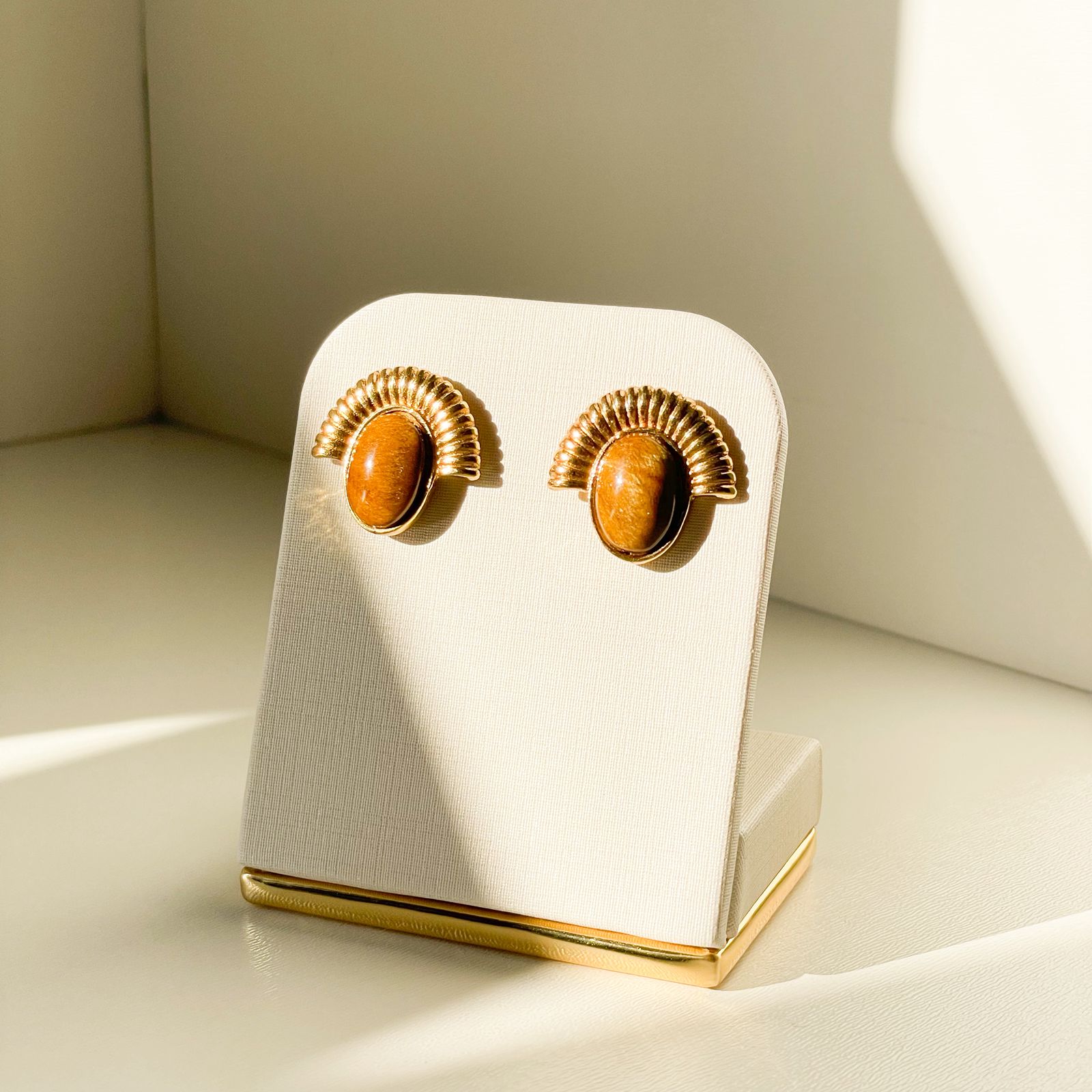 O olho de tigre é uma gema com efeito de "olho de gato" (chatoyancy), apresentando cores que variam entre amarelo, marrom e vermelho-marrom, com um brilho sedoso.