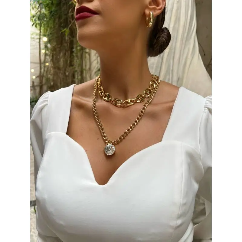 Colar super imponente e sofisticado com 50cm e mais um extensor de 5cm banhado a ouro com uma pedra no cristal de 20mm.