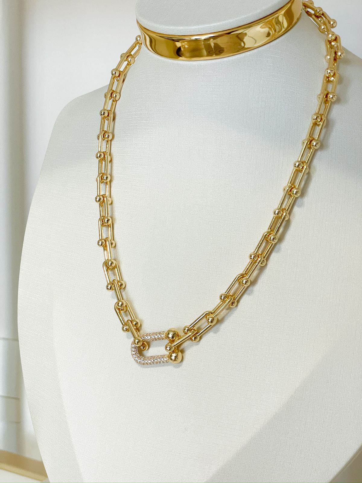 Colar Elos com Elo Frontal Cravejado – Banho Ouro