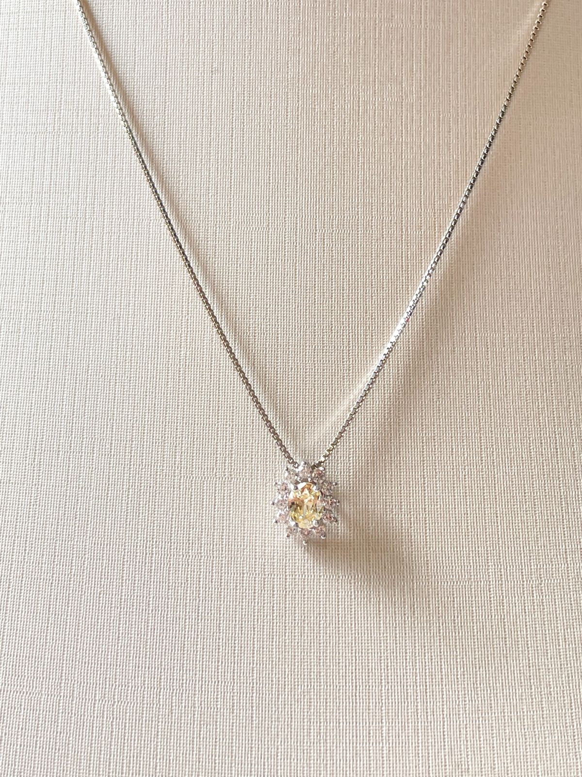 Delicado e atemporal, este colar em Prata 925 traz um pingente sofisticado com cristal na tonalidade yellow fancy, rodeado por zircônias brancas que realçam o brilho da peça com sutileza e elegância. Seu design clássico combina perfeitamente com diferentes estilos, podendo ser usado sozinho ou em composições com outros colares.